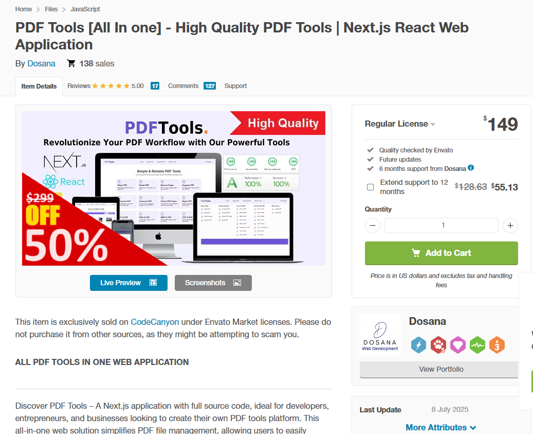 PDF Tools [All In one] – High Quality PDF Tools | Next.js React Web Application – Full Code