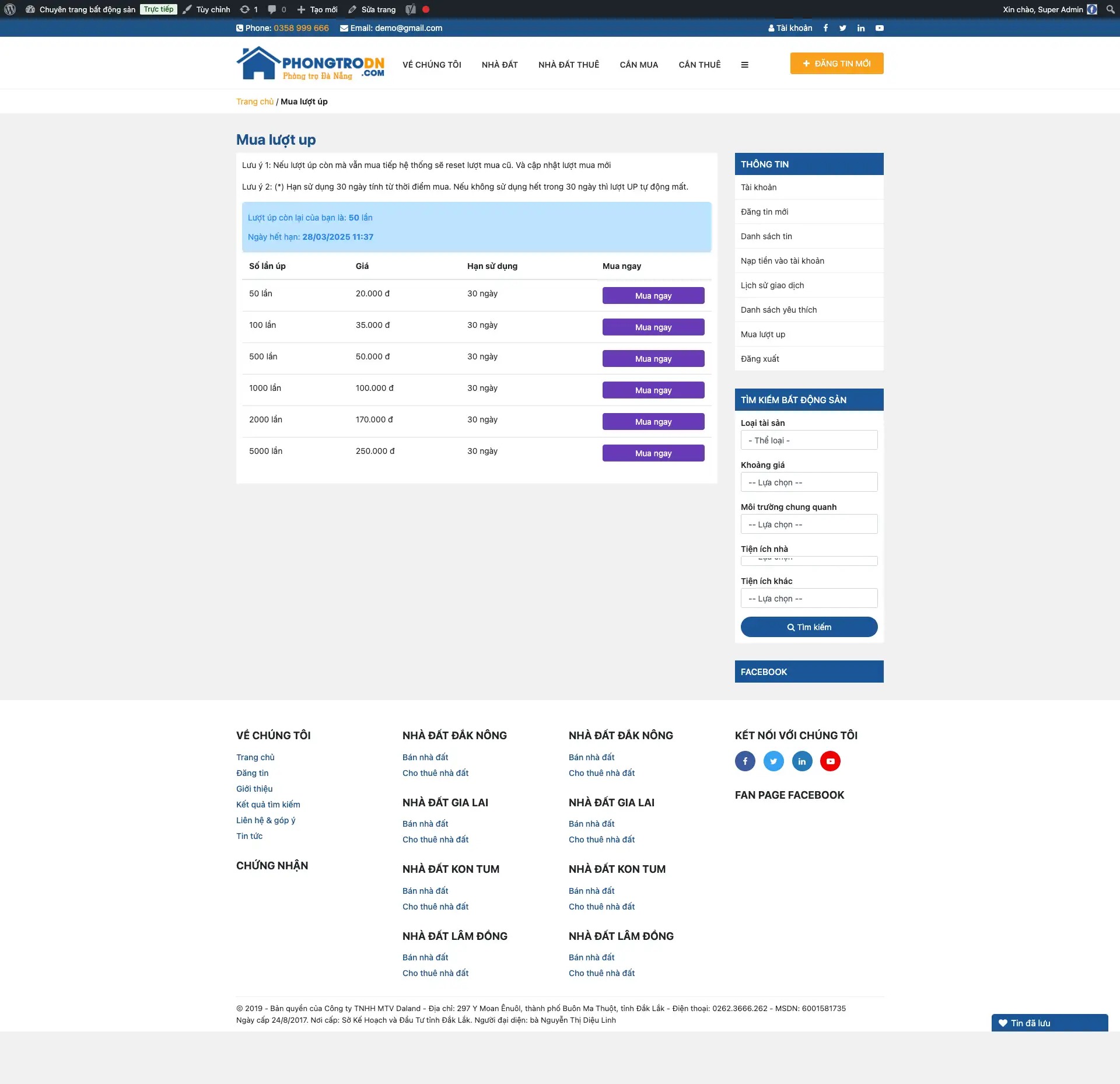 - Hệ thống nâng VIP tin đăng (ưu tiên hiển thị)